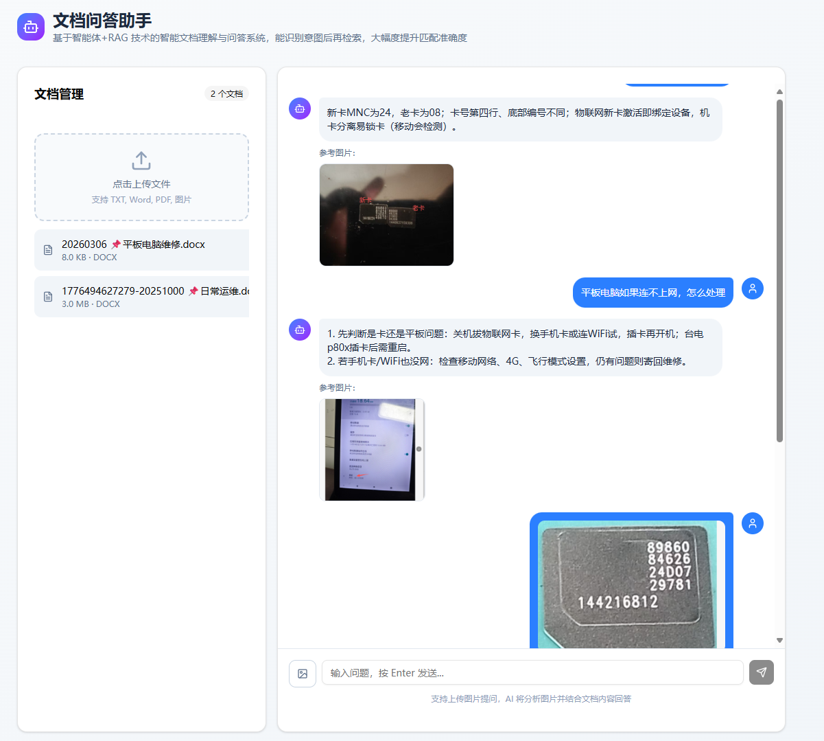 | 图片关联 | chunk 元数据记录图片索引,检索时关联返回 |