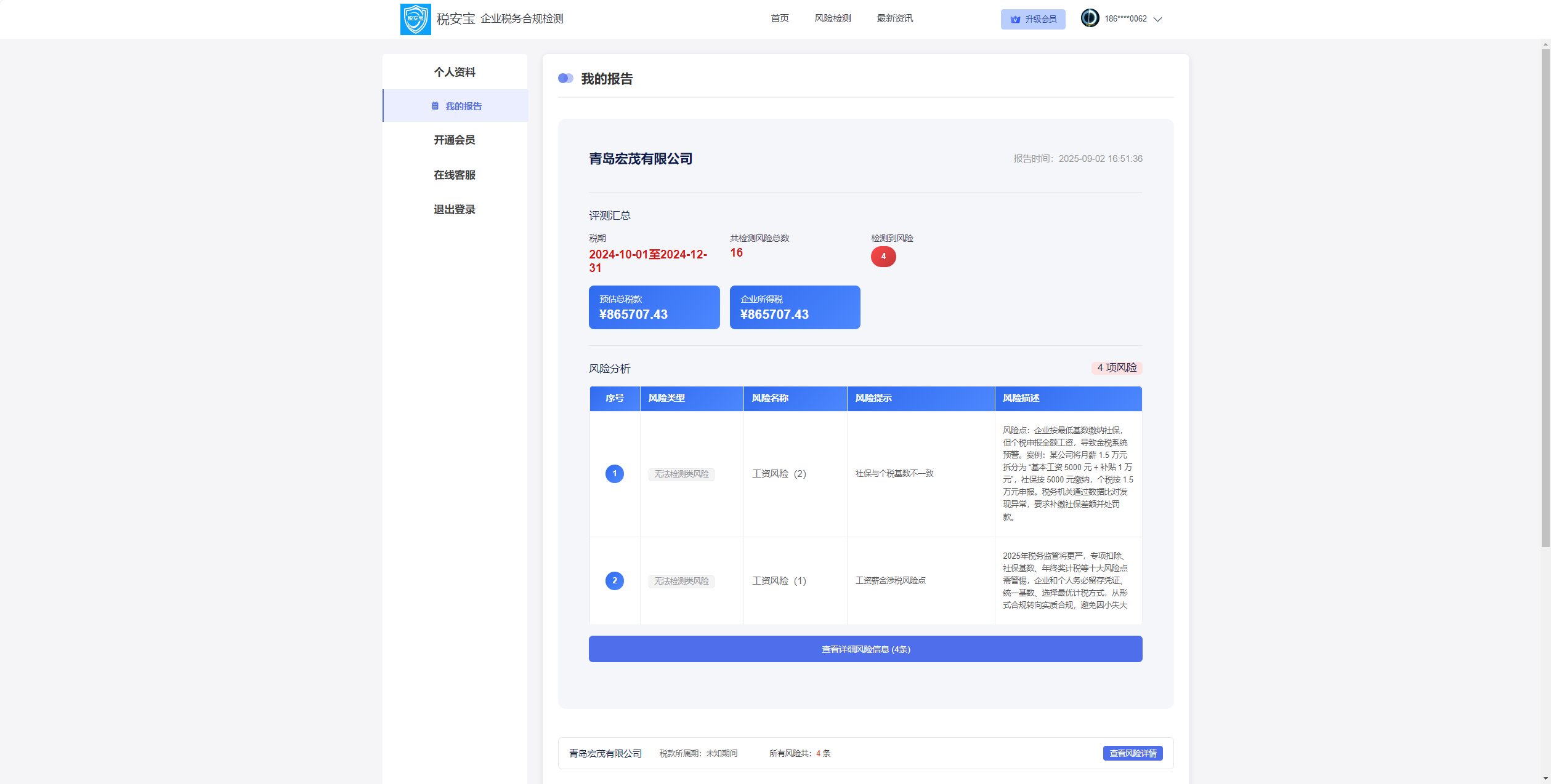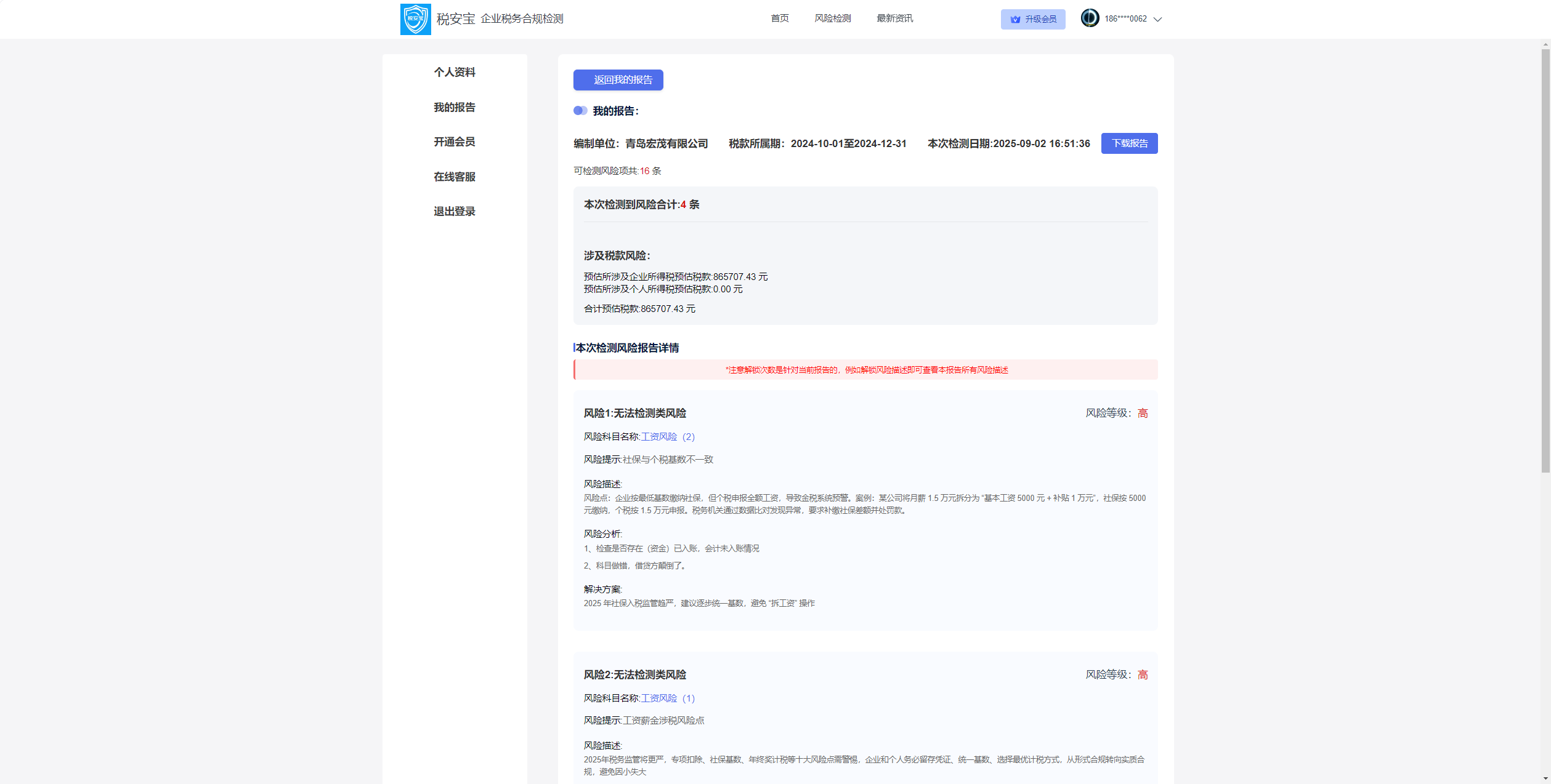 用上传的财务报表excel或者拍照,来自动检测企业税务风险