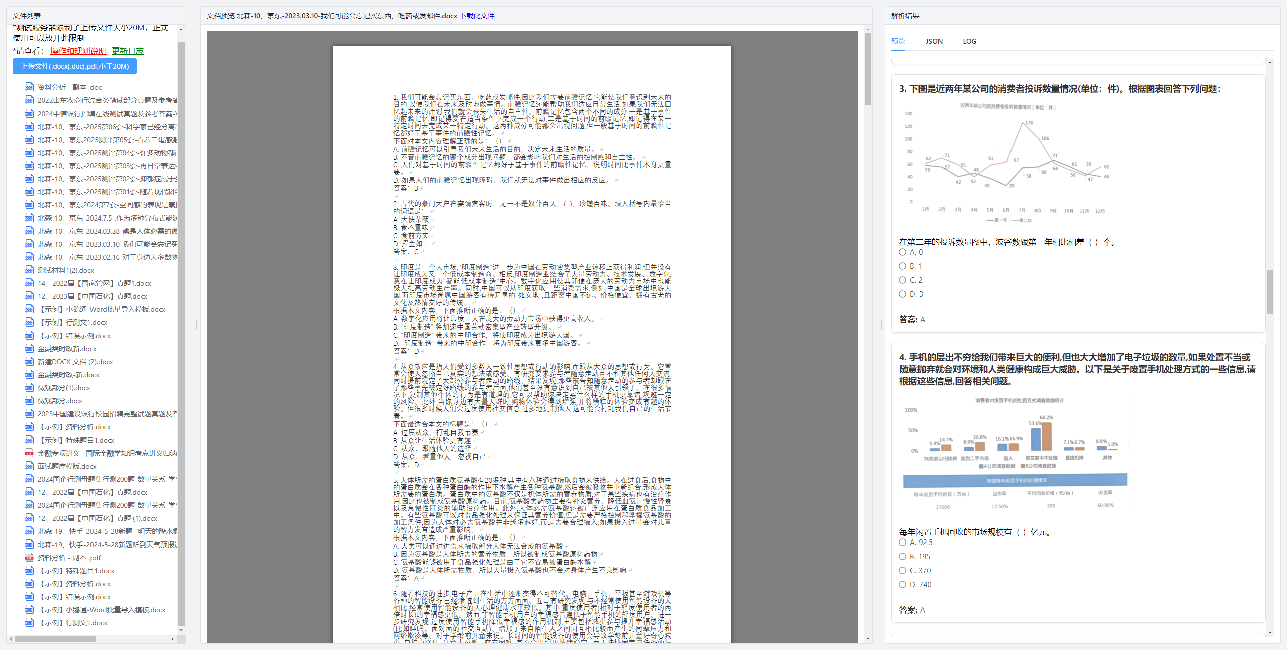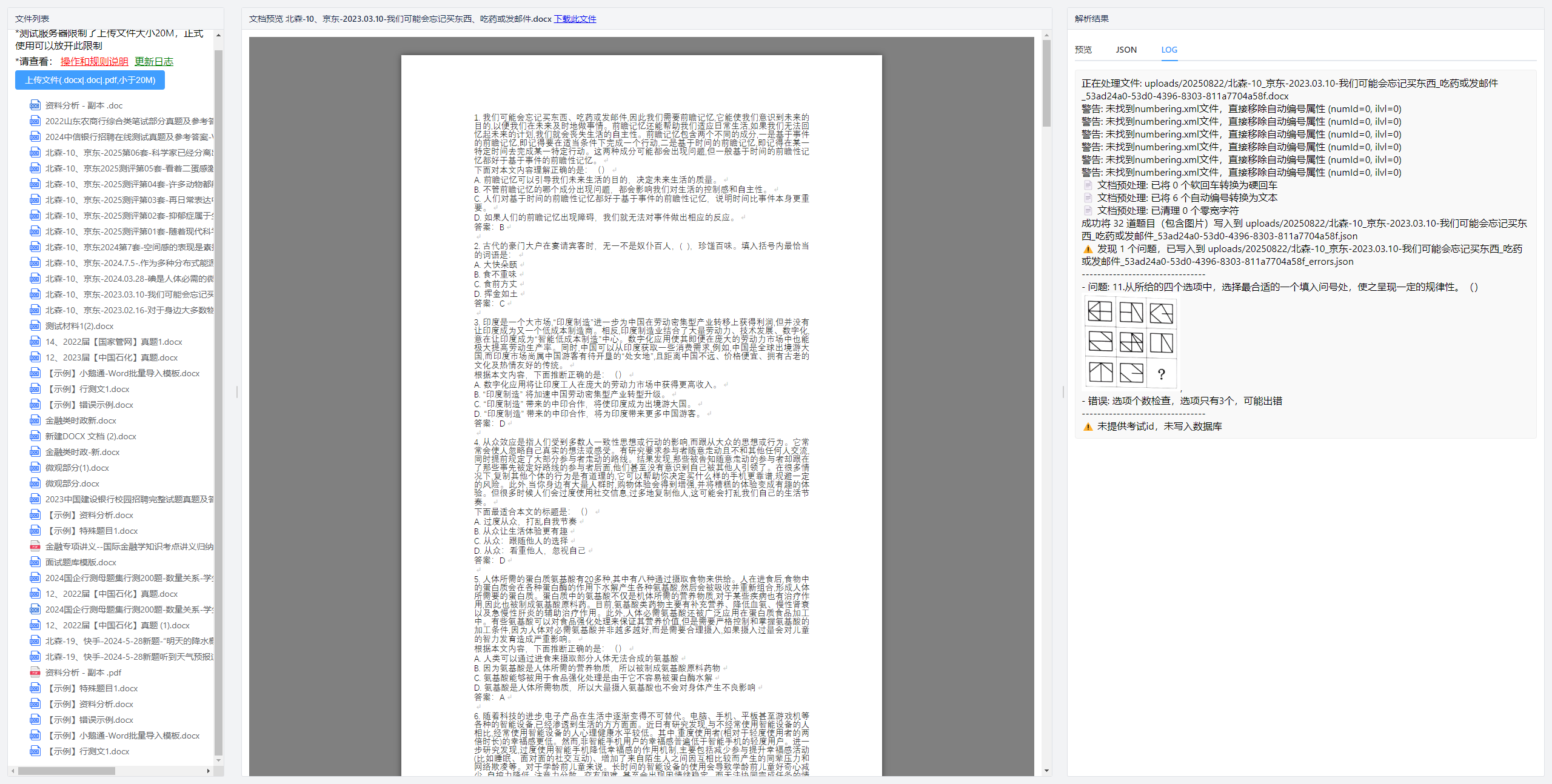 一款word、pdf试题解析服务,把试题解析和保存成结构化数据