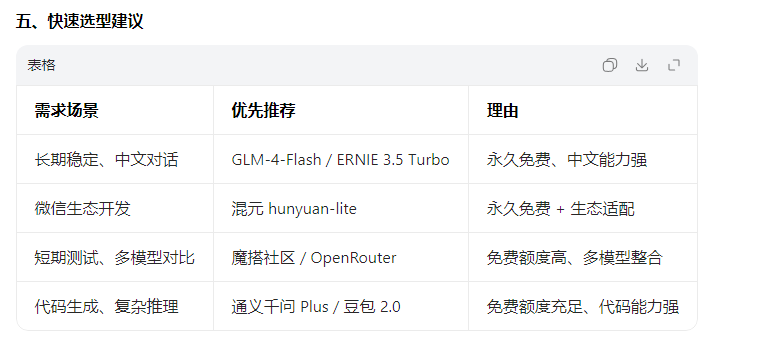 | 通义千问 Turbo 基础版 | 魔搭社区:https://modelscope.cn/home 通义千问官网:https://tongyi.aliyun.com/qianwen/ | API 开通:魔搭社区→模型市场→通义千问 Turbo→申请免费额度→获取 AK/SK |